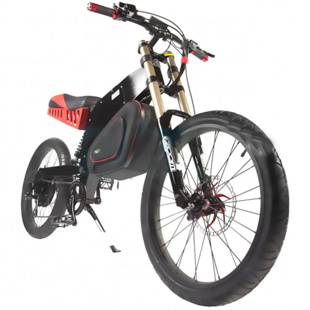 Велогибрид оснащен мощным движком – 2000 Вт, характеристики которого позволяют разогнаться до 50 км и на одном пробеге преодолеть расстояния до 90 км. Оснащенность байка амортизационной вилкой ЗУМ и задним фирменным амортизатором делает плавной езду на проблематичной местности.