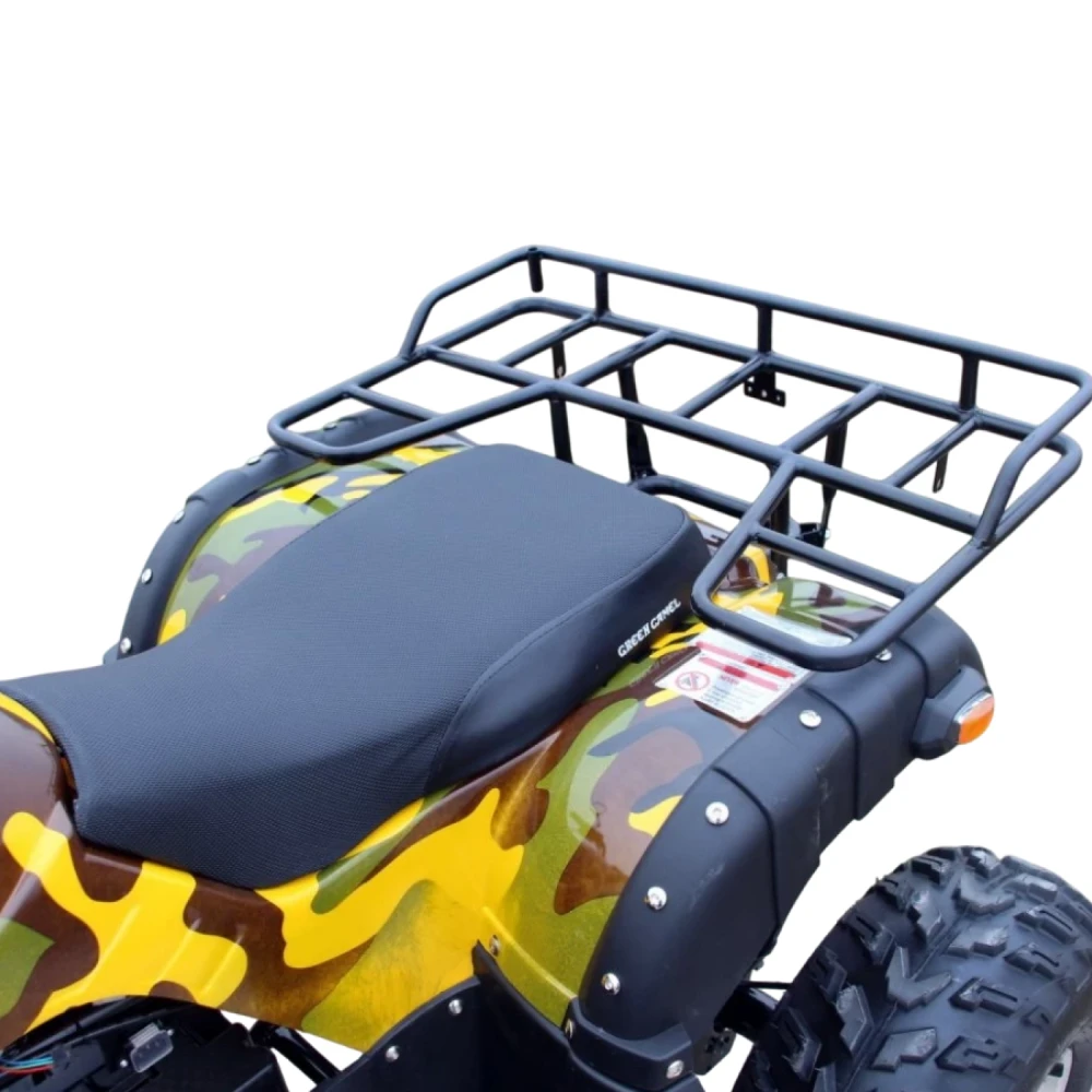 На квадроцикл GreenCamel Caxapa A4000 устанавливается сигнализация для лучшей безопасности. LED спидометр, с которым ваш ребенок сможет контролировать скорость на грунтовых дорогах и не преувеличить с ручкой подачи газа. Багажник спереди и сзади, на который можно положить вещи, трос, лебедки для большей уверенности в лесных тропах. Квадроцикл оборудован фаркопом.