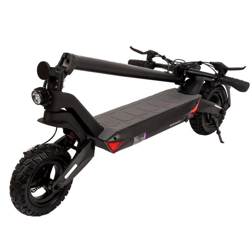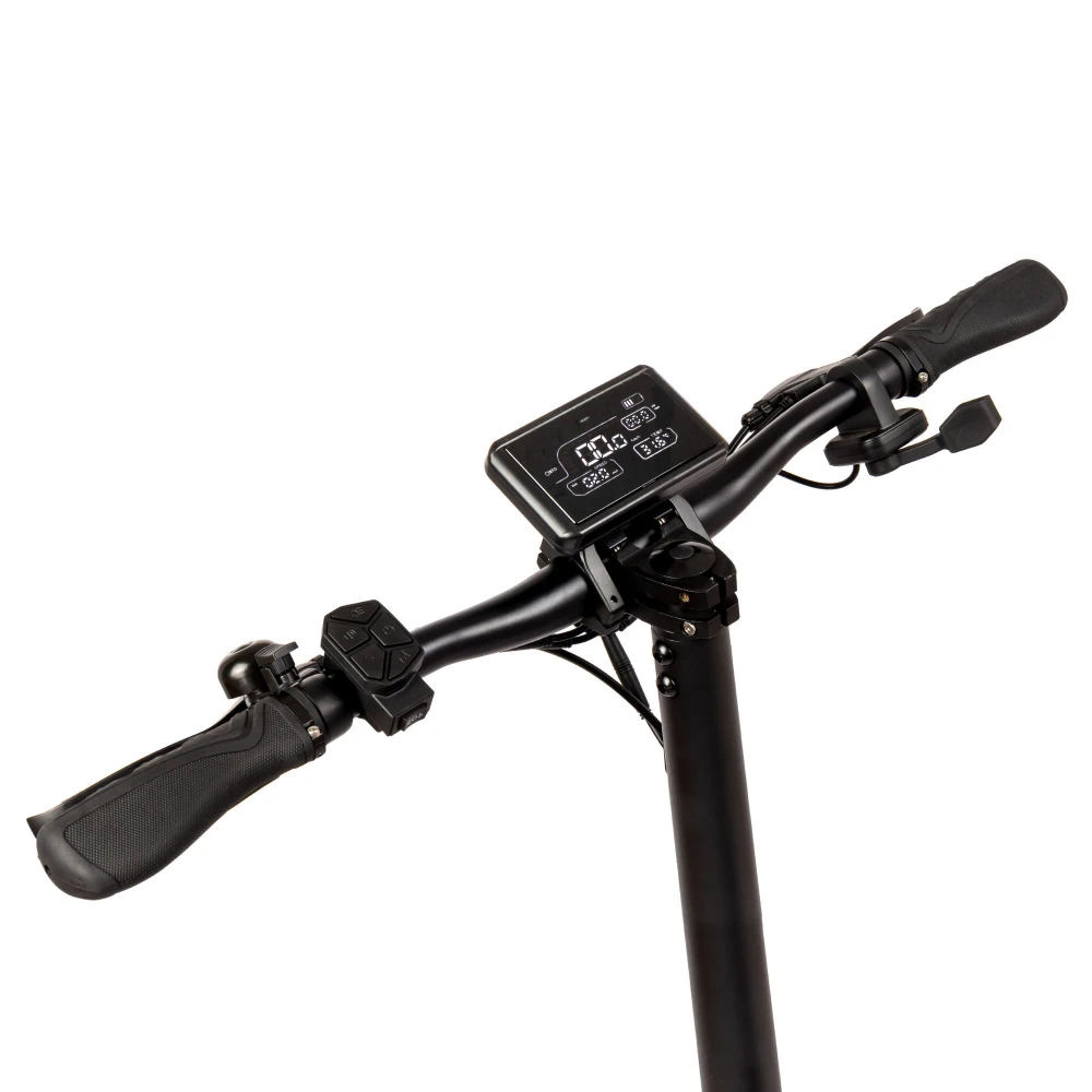 Алюминиевая конструкция рамы делает технику легкой и удобной. Широкая дека, покрытая шершавой шкуркой обеспечивает устойчивость стоп. Прорезиненные грипсы повторяют анатомическое строение руки, исключают соскальзывание, минимизируют непредвиденные ситуации в пути. Современный информационный дисплей показывает скорость движения, степень заряда аккумуляторной батареи и протяженность пути.