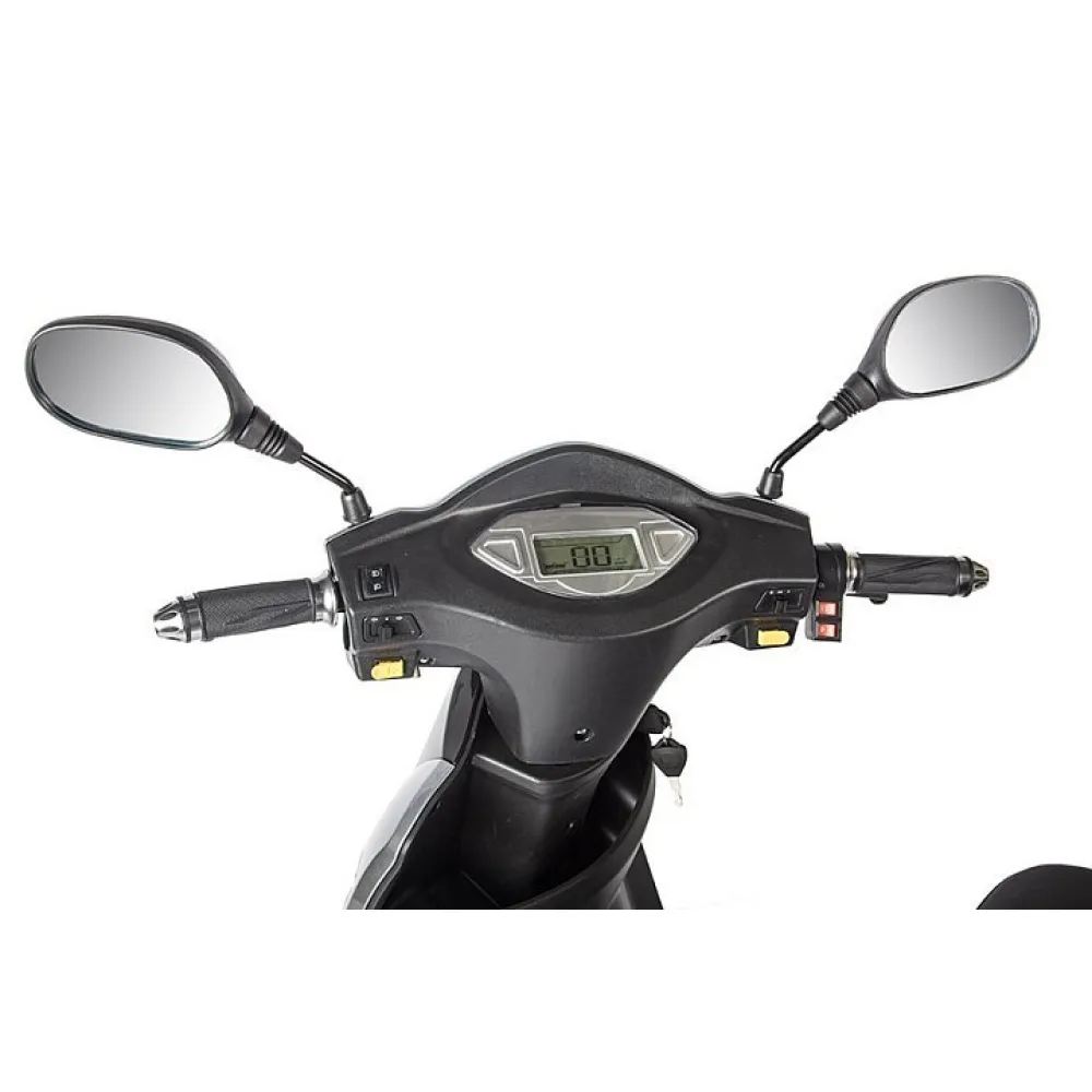 При мощности двигателя 1000 Вт и емкой АКБ электроскутер способен разогнаться до 30 км/час и на одной подзарядке проехать до 50 км пути. При массе тс 80 кг максимальная грузоподъемность составляет 120 кг.