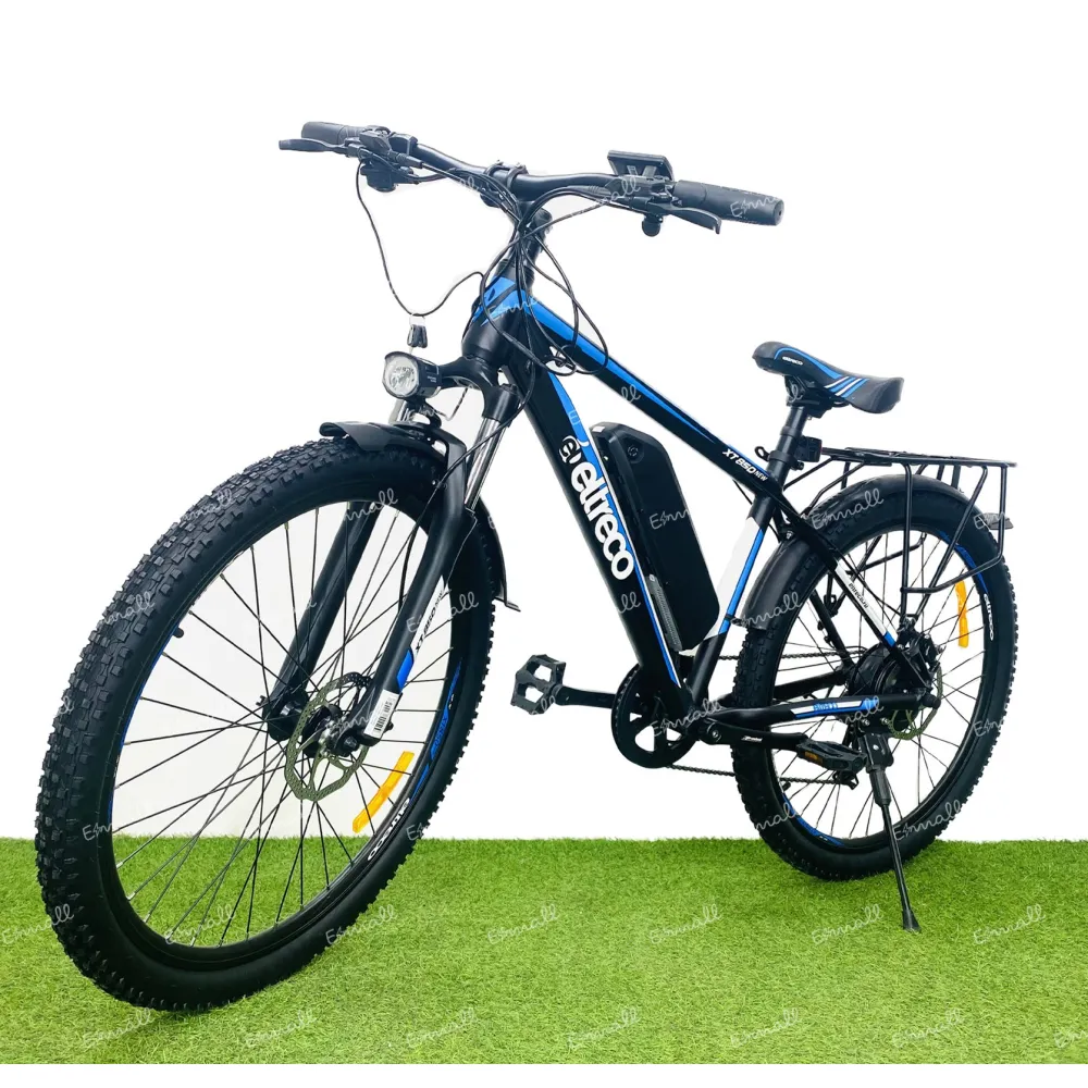 Флагманская модель велогибрид Eltreco XT 850 new в серо-синих цветовых оттенках покорила даже искушенных велорайдеров. Электровелосипед, представленный в каталоге нашего магазина отвечает лучшим качественным характеристикам. При производстве техники производитель позаботился о легкости, мощи, тормозных и скоростных характеристиках, удобстве и комфорте. Указанная модель является совершенной. Преимущества техники, следующие: