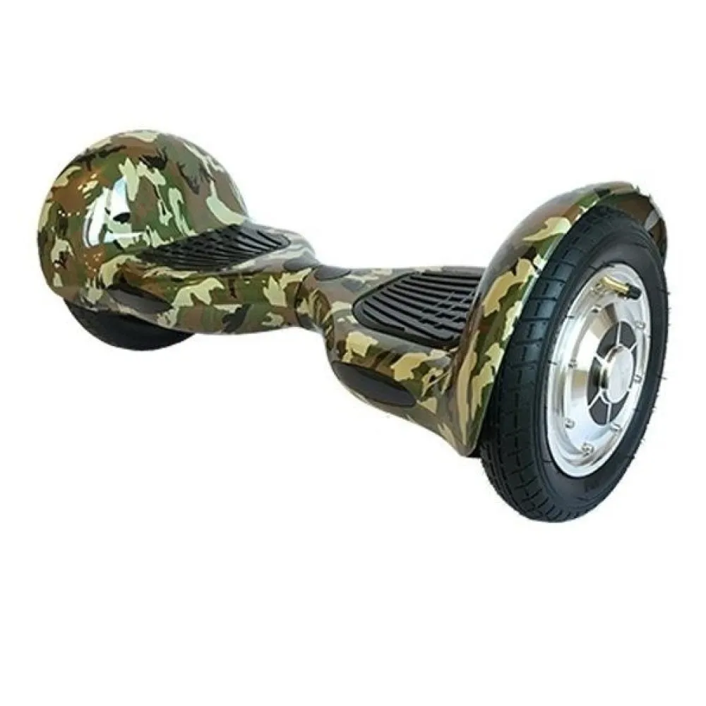 ГИРОСКУТЕР SMART PREMIUM 10" Зеленый камуфляж с колесами диаметром 10 дюймов может передвигаться по траве и въезжать на невысокие ступеньки, преодолевать бордюры. Эластичная резина улучшает сцепление с дорожным покрытием.