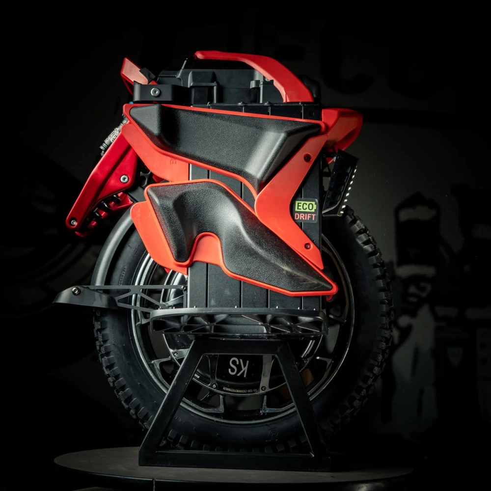 Техника весом 35 кг эргономичная и компактная. Оснащена поперечной подвеской с рычажной структурой. Подобные механизмы используются в создании гоночной техники. При мощности мотор-колеса 3300 Вт и емкости батареи 2220 Втч техника способна выжимать скорость машины – 70 км/час. Запас хода составляет – 200 км. Производитель обращает внимание на возможность быстрой зарядки батареи (4 часа)